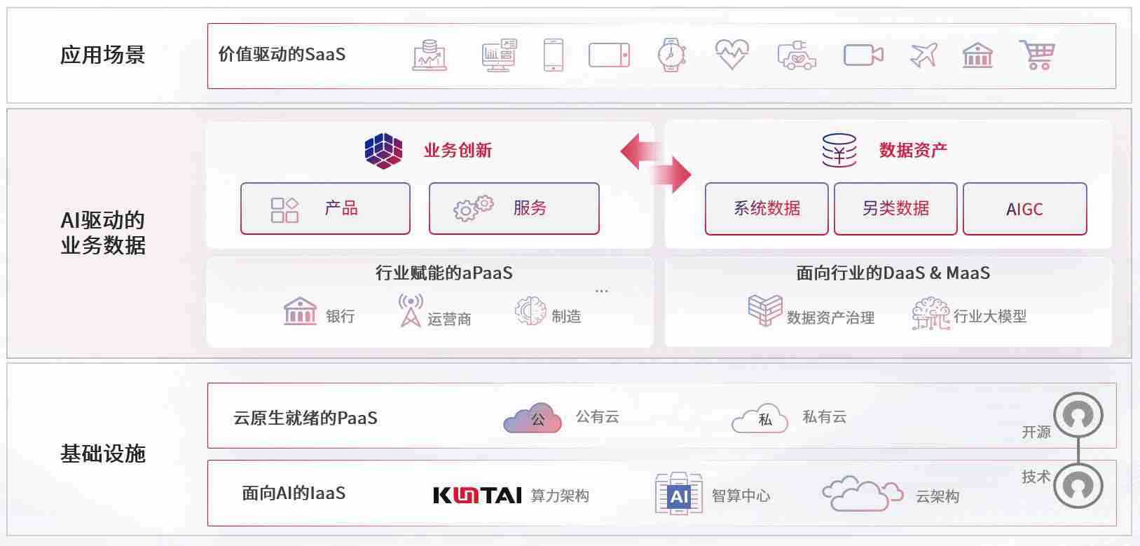 数字时代,,,围绕企业数字化转型的关键要素,,,,NO钱包数码开创性的提出数云融合战略和技术体系框架,,,着力在云原生、、数字原生、、AI原生和信创产业上架构产品和服务能力,,为处在不同数字化转型阶段的快消零售、、、、汽车、、、金融、、医疗、、政企、、、、教育、、、、运营商等行业客户提供泛在的敏捷IT能力和融合的数据驱动能力,,构建跨界融合创新的数字业务场景和新业务模式,,,助力企业级客户建立面向未来的核心能力和竞争优势,,,全面推动社会的数字化、、、智能化转型升级。。